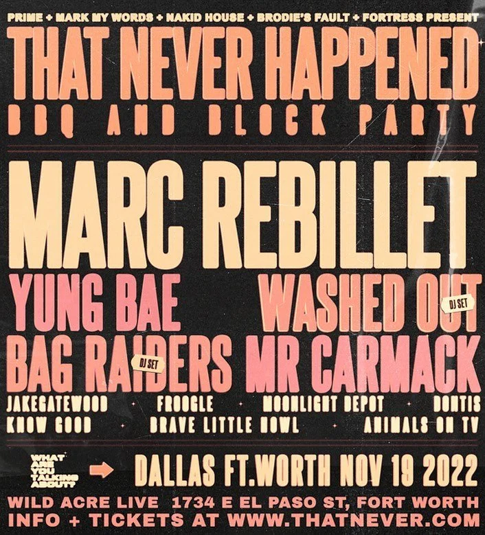 View fullsize announcing That Never Happened 🙊 #blockparty @wildacrelive this nov 19 with @marcrebillet @yungbae @realwashedout @bag_raiders @mr_carmack + more. Tix at thatnever.com